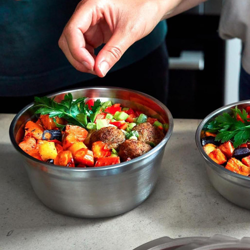 This microwavable steel food bowl is lightweight, airtight and durable, it is perfect for meal prep, food storage, or simply eating on-the-go. It is also leak proof, dishwasher and oven-safe, and come in a small and large size for breakfast, lunch, and everything in between.